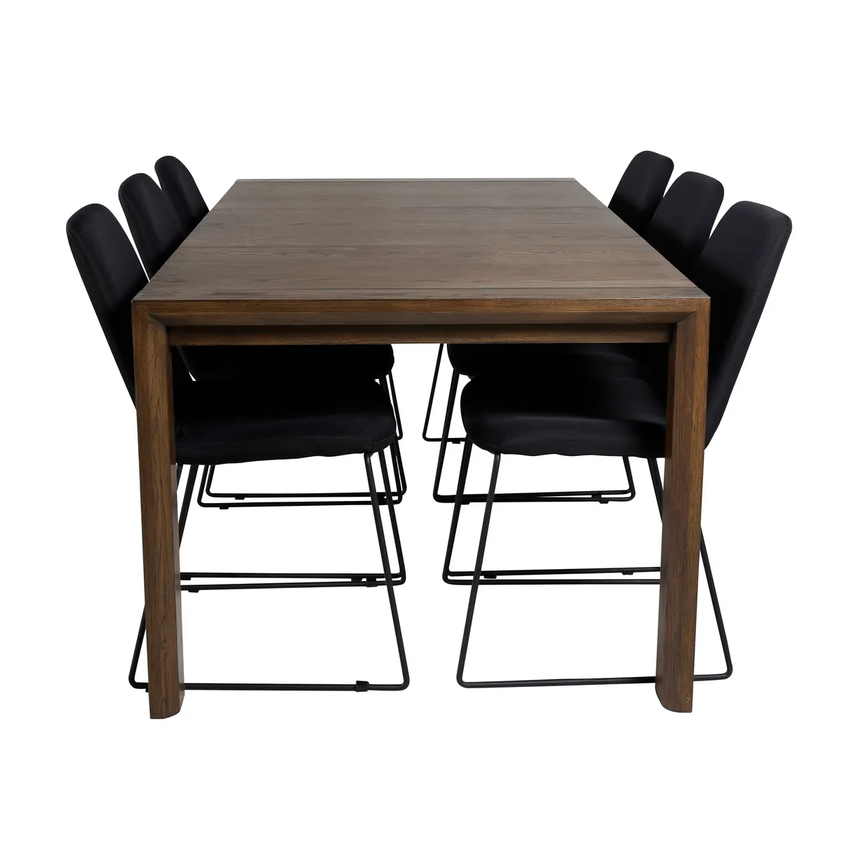 Der Esstisch Slider in stilvoller Eichenoptik bietet eine Erweiterungsmöglichkeit. Kombiniert hier mit den modernen Esszimmerstühlen Muce. Eine Lebensmittelgruppe, die gut funktioniert sowohl bei kleinen und großen Parteien!