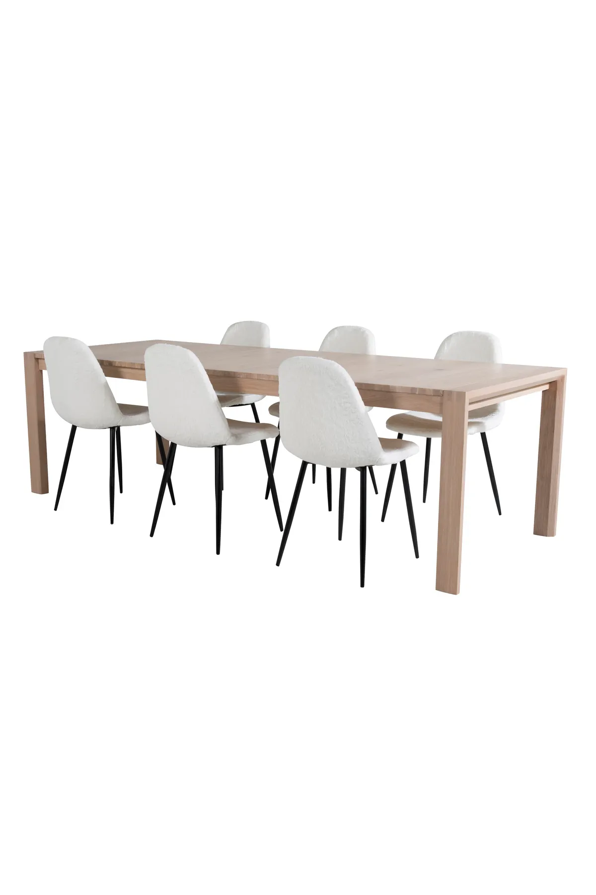 Mit dem ausziehbaren Esstisch in der Serie Slider zusammen mit den unglaublich schönen Esszimmerstühlen Polar in White Teddy erhalten Sie eine Essgruppe, die Ihnen die Kombination – klassisch, modern und gemütlich!