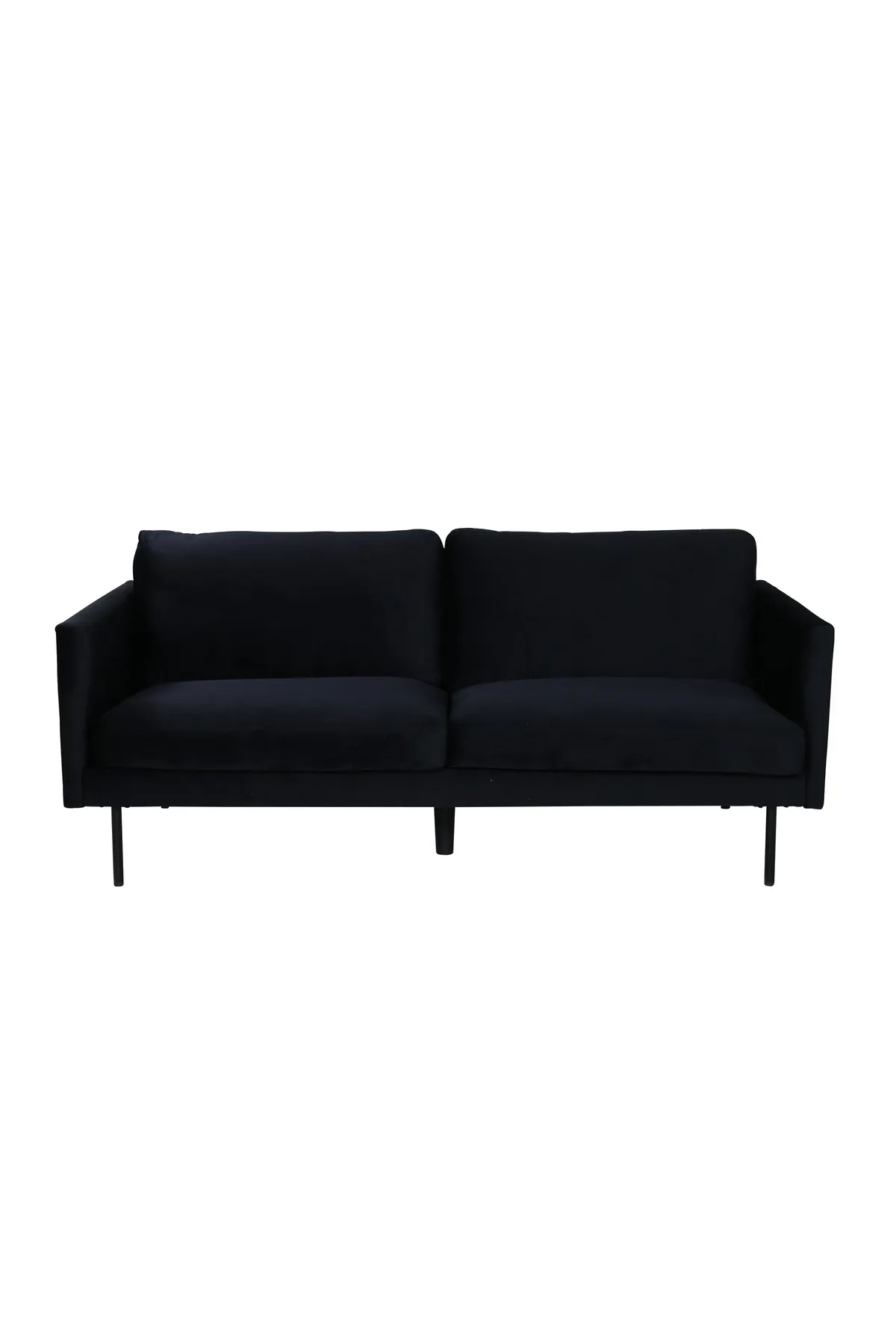 Die Sofaserie Zoom bietet sowohl elegantes Design als auch hohen Sitzkomfort. Dekorieren Sie Ihr Zuhause mit diesem pompösen 2-Sitzer-Sofa in frecher schwarzer Samtkleidung und verleihen Sie dem Raum ein luxuriöses Gefühl. Das Design ist zeitlos mit geraden nordischen Formen und stilvollen schmalen Metallbeinen, die für einen luftigen Look etwas höher sind. Ein moderner Sofatraum eben! Sofa Abmessungen: Breite: 181 cm, Tiefe: 54 cm, Höhe: 80 cm.
