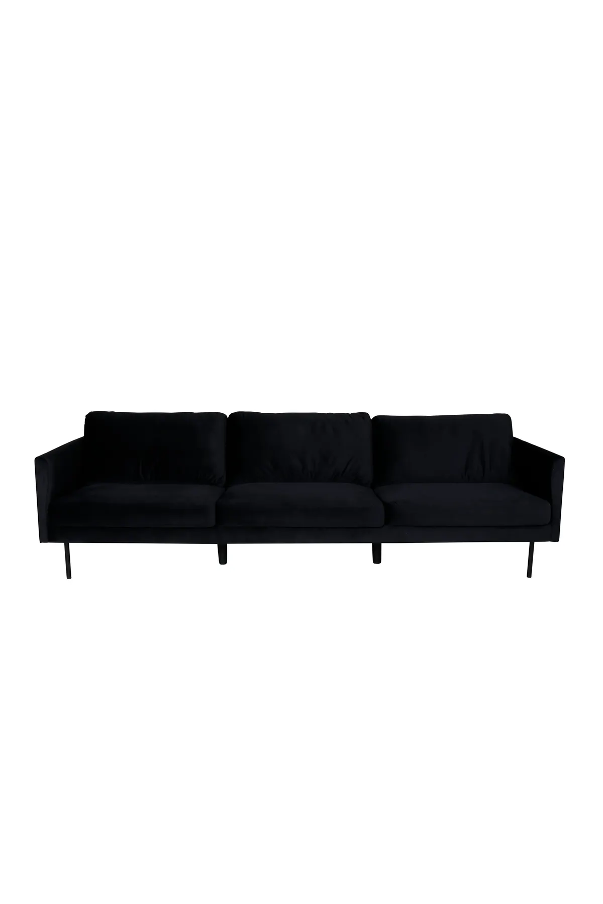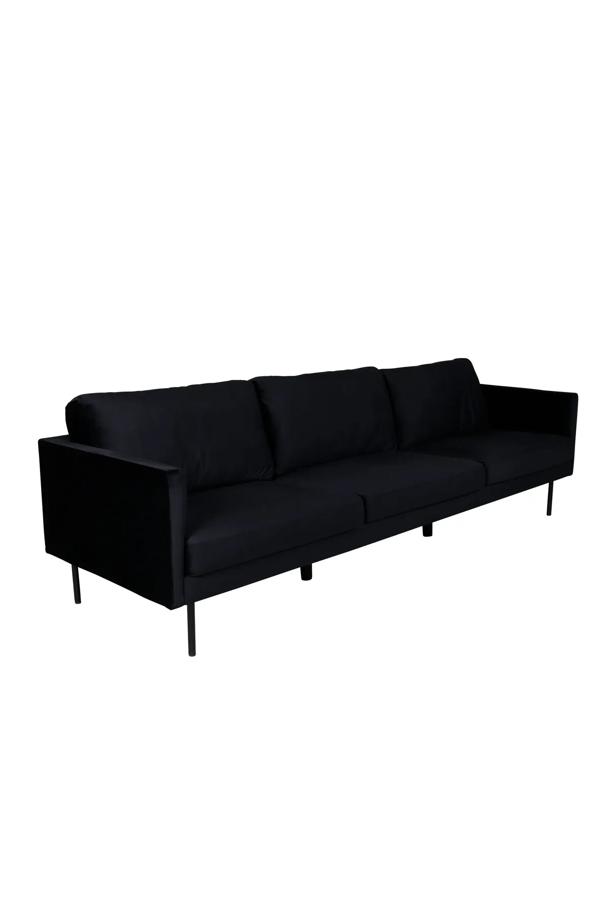Luxuriös, gemütlich und einladend – kein Zuhause ist komplett ohne das perfekte Sofa! Zoom 3-Sitzer-Sofa in weicher Samtbekleidung und frecher schwarzer Farbe schafft einen Blickfang, der beeindruckt. Mit skandinavisch inspirierten geraden Formen, moderner Stilreinheit und weicher Polsterung wird dieses Sofa schnell zum Lieblingsstück. Hergestellt aus schwarzem Stoff und schmalen zylinderförmigen Beinen aus schwarzem Metall. Sofa Abmessungen: Breite: 262 cm, Tiefe: 54 cm, Höhe: 80 cm. Sie müssen keine Kompromisse zwischen Stil und Komfort eingehen!