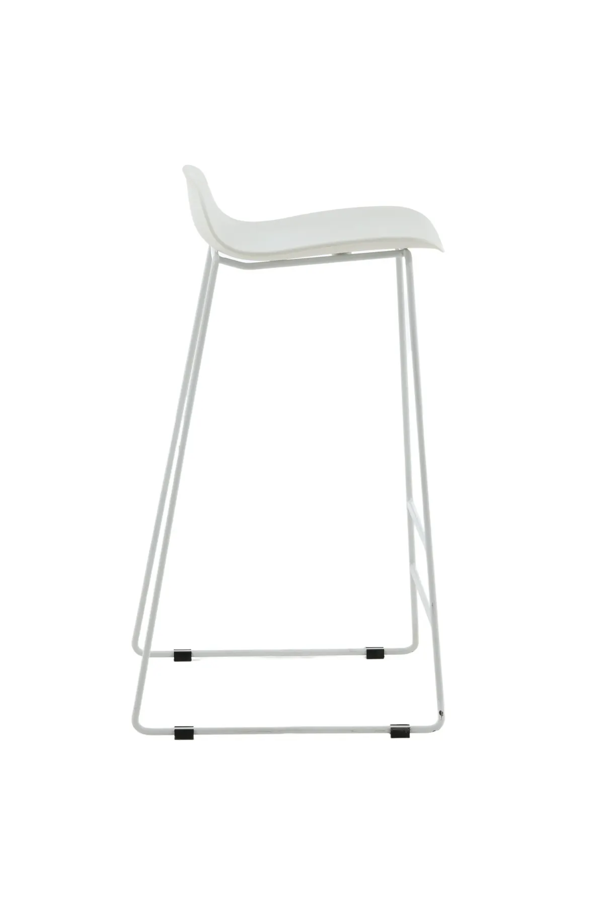 Ein stilvoller Esszimmerstuhl im minimalistischen skandinavischen Design aus der Wave-Serie wird sicherlich ein Erfolg in der Kaserne sein! Dieser Barhocker kommt in einer hellen weißen Farbe, mit weiß pulverbeschichtetem Metallgestell, integrierter Fußstütze für zusätzlichen Sitzkomfort und niedriger Rückenlehne und Sitzfläche aus weißem Vollkunststoffguss. Leichter Zusammenbau ist erforderlich.