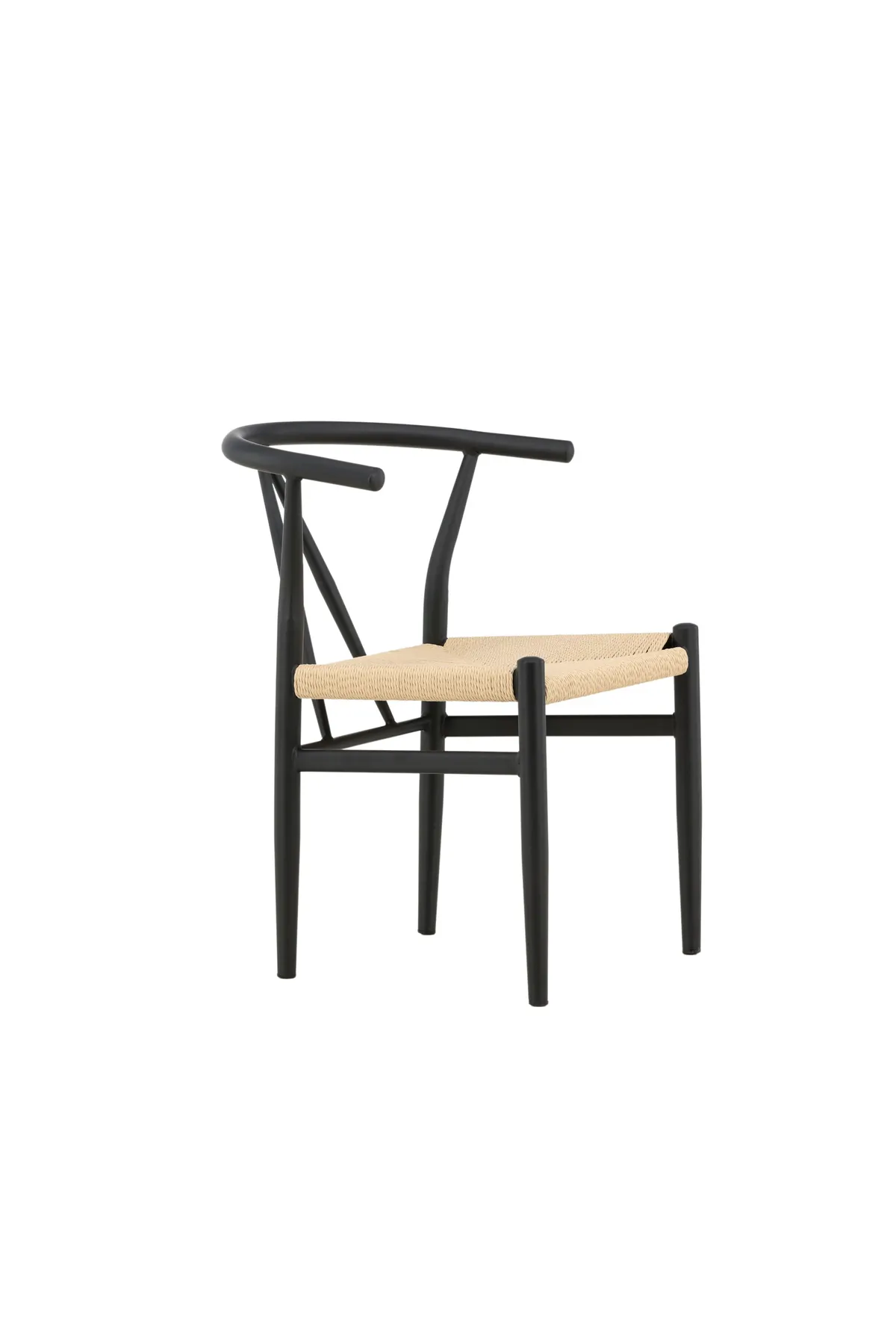 Der Esszimmerstuhl Alfons verbindet Stil und Funktionalität auf elegante Weise. Mit einer Sitzfläche aus beigem Rattan und einem Gestell aus schwarzem Stahl verleiht er Ihrem Esstisch eine zeitlose und klassische Note.