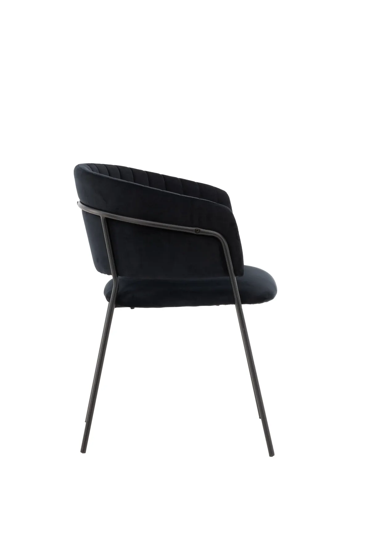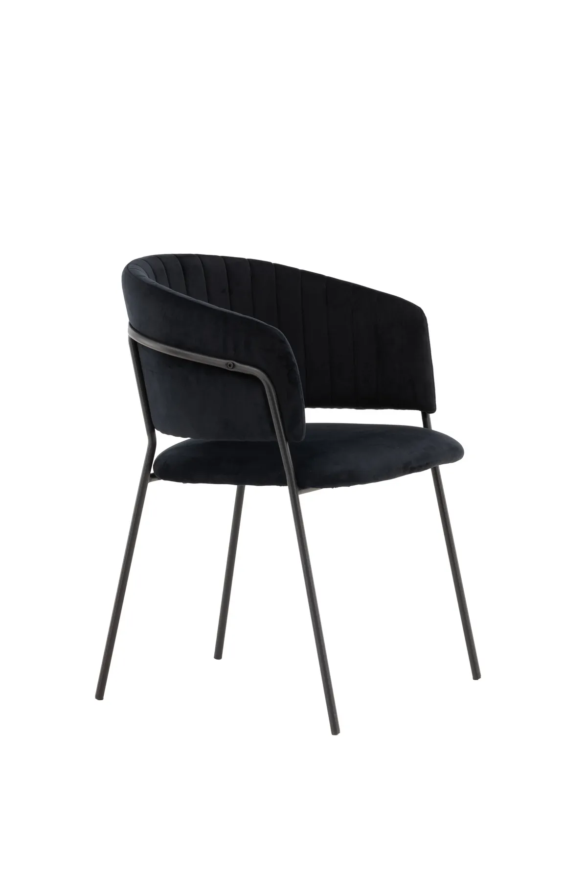 Richten Sie Ihr Zuhause modern, komfortabel und zeitlos ein mit einem auffälligen Stuhl aus der Serie Selma in frechem Schwarz! Dieser Esszimmerstuhl hat ein vollverkleidetes Design mit einer leicht abgerundeten Rückenlehne und Sitzfläche in Samtstoff mit stilvollen Ziernähten und die Stuhlbeine sind schmal in schwarzem Stahl – garantiert schön und bequem. Schaffen Sie einen einladenden und angenehmen Look und genießen Sie schöne gemeinsame Mahlzeiten!