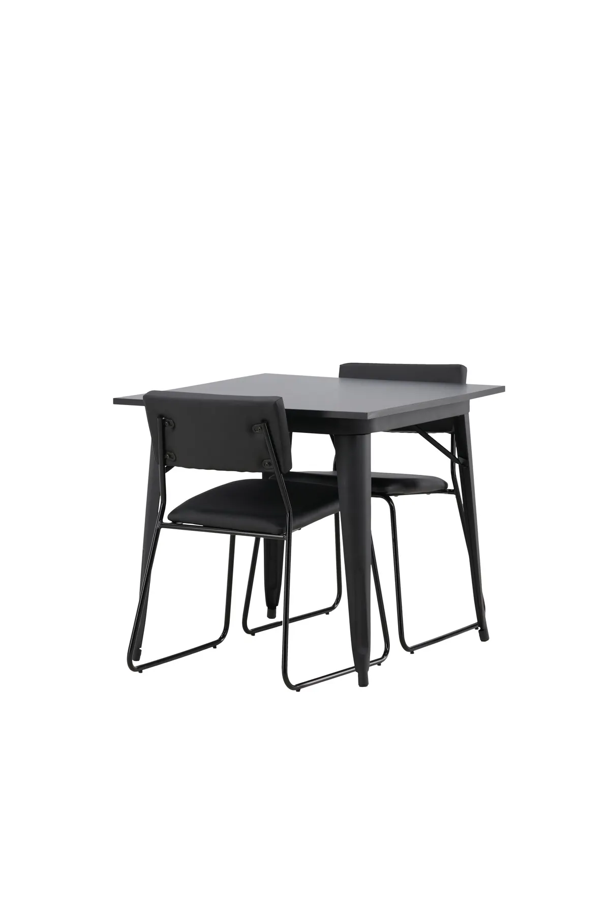 Eine hübsche Essgruppe, die perfekt in die kleinere Küche passt! Dieser Esstisch aus der Tempe-Serie hat ein klassisches, quadratisches Design und eine zeitlose schwarze Farbe. Die Tischplatte ist aus schwarzem MDF und die Beine aus schwarzem Metall. Hier in geschmackvoller Kombination mit zwei Esszimmerstühlen aus der Serie Kenth. Der Stuhl hat ein minimalistisches, modernes Design, das ein luftiges Gefühl im Raum erzeugt. Rückenlehne und Sitzfläche sind aus schwarzem PU-Leder und Polyester, die schmalen Stuhlbeine sind aus Eisen. Schaffen Sie einen charmanten und modernen Blickfang in Ihrem Wohnzimmer!