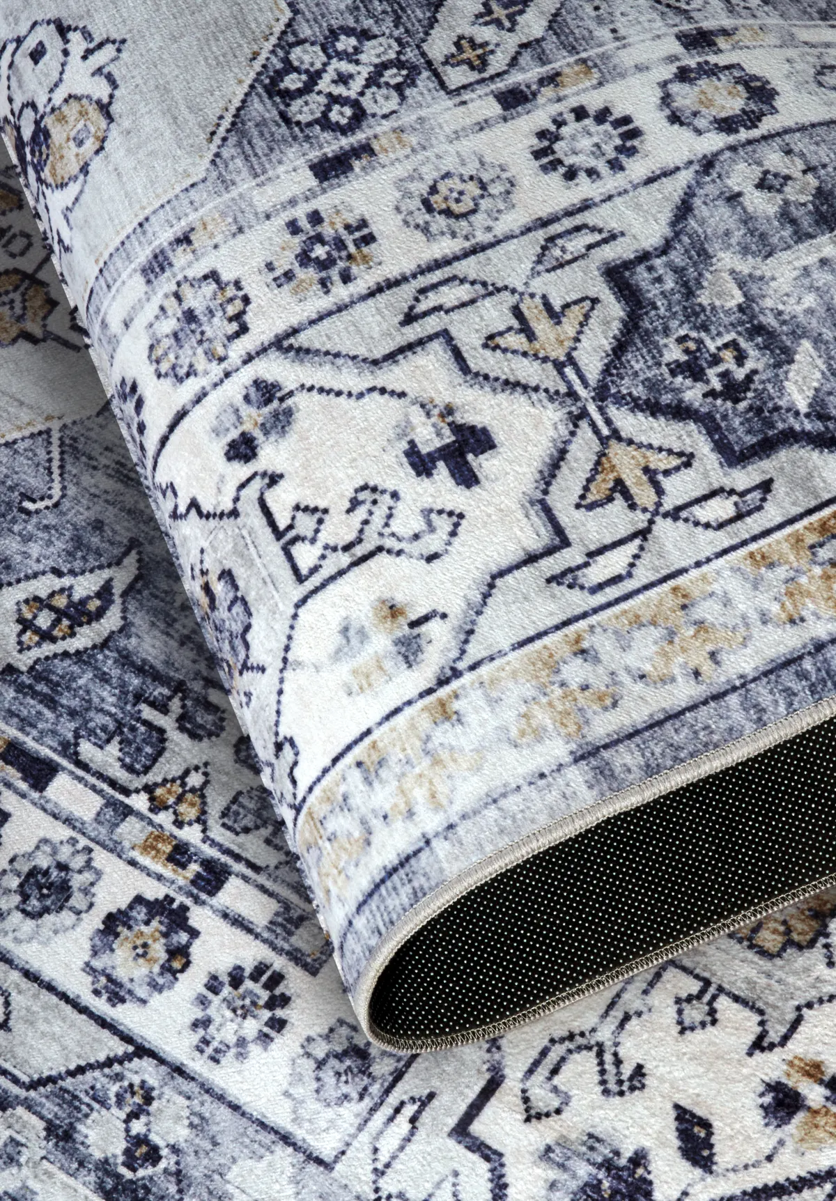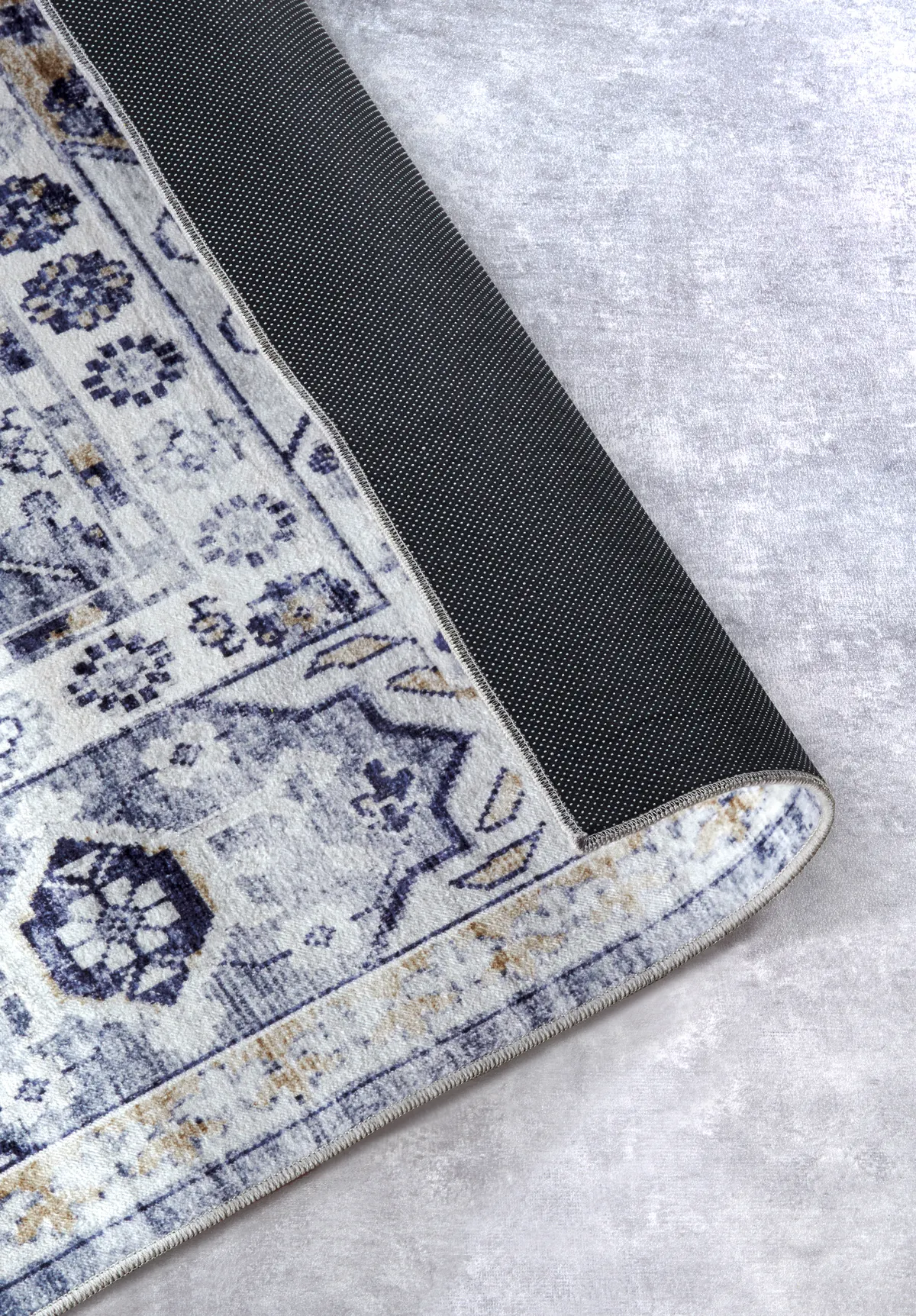 Hanse Startseite Asien Shortpile Teppich Meridiem Blau Gold