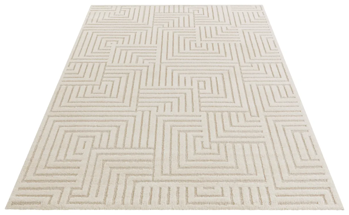 Elle Decoration New York Kurzflorteppich in Hoch-Tief Effekt Manipu Creme