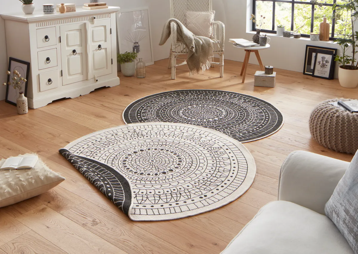 Hanse Home Twin Wendeteppiche In- & Outdoorteppich Rund Porto Creme Schwarz