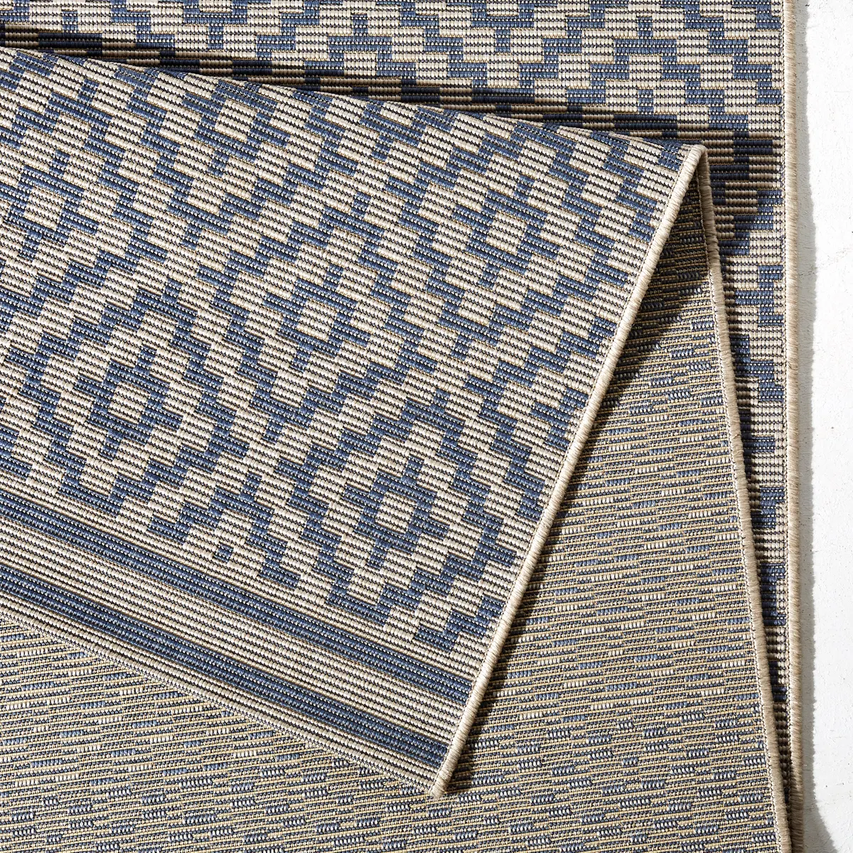 Hanse Home Meadow In- & Outdoorteppich Raute Blau Creme