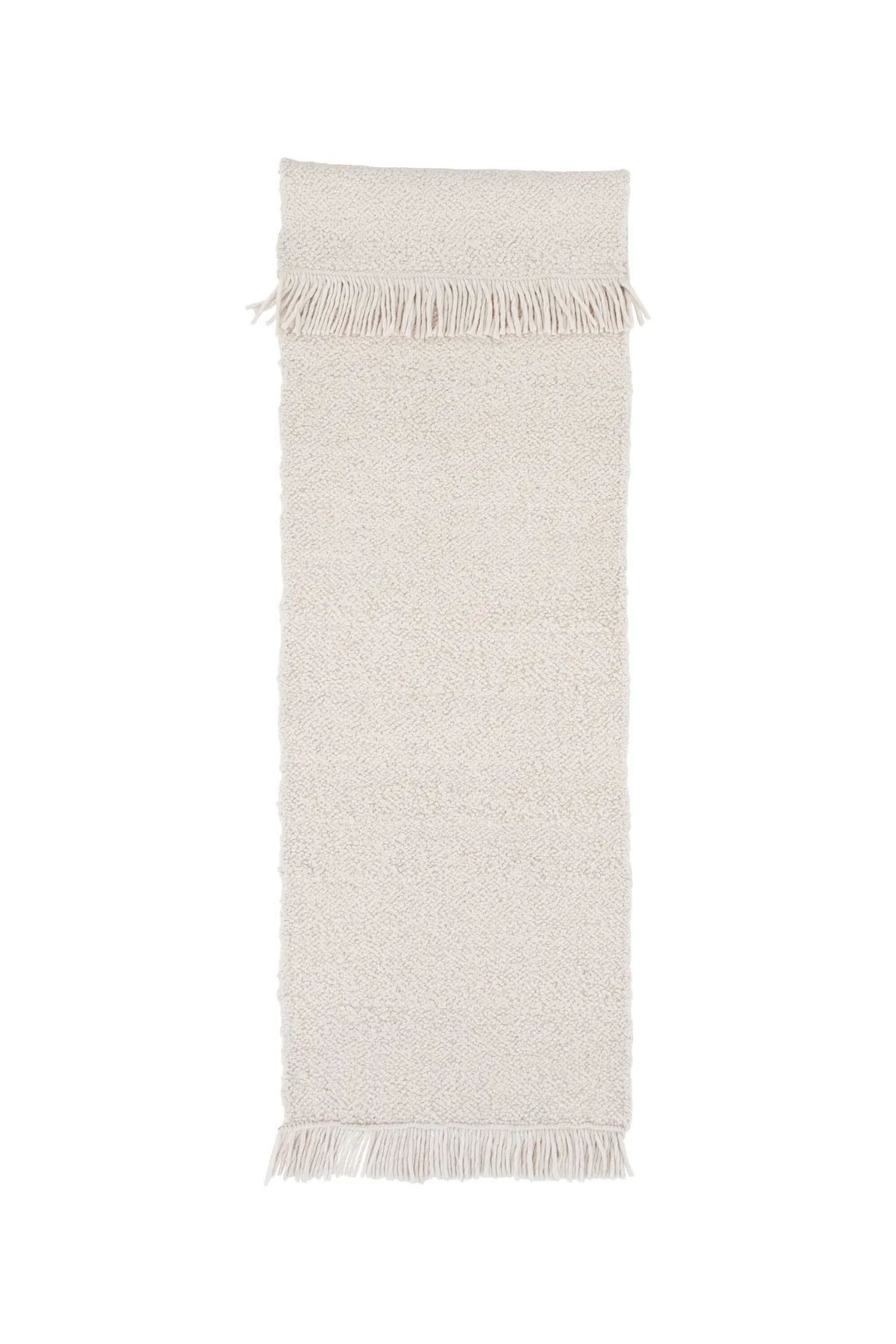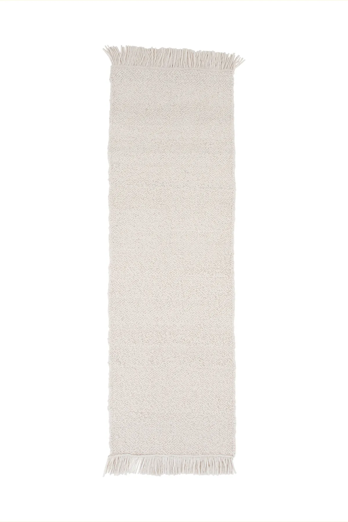 Schaffen Sie einen Blickfang, der beeindruckt und dekorieren Sie Ihr Wohnzimmer gemütlich mit einer exklusiven Wollmatte! Die Mattserien Betina bieten handgewebte Wollteppiche mit einer Technik, die dem Teppich eine schöne Knüpfstruktur mit hohem Gehkomfort verleiht und ist in verschiedenen Größen und Farben erhältlich – wählen Sie, was am besten zu Ihrem Zuhause passt! Diese rechteckige Schönheit hat ein modernes Design und einladende Eigenschaften. Die weiße Farbe verleiht dem Raum Wärme und die knochenweiße Fransenlinie an den kurzen Seiten ist ein schönes Detail. Das Material fühlt sich nicht nur luxuriös an, sondern verfügt auch über mehrere attraktive Eigenschaften, die Ihnen im Laufe der Zeit eine treue Matte garantieren. Kuscheln Sie Ihre Füße ein und genießen Sie einen modernen Blickfang im Wohnzimmer! Die Abmessung der Matte: 250×80 cm.