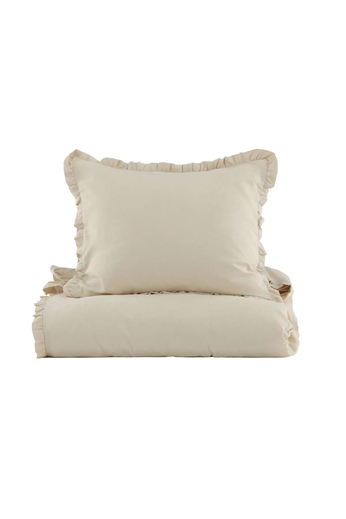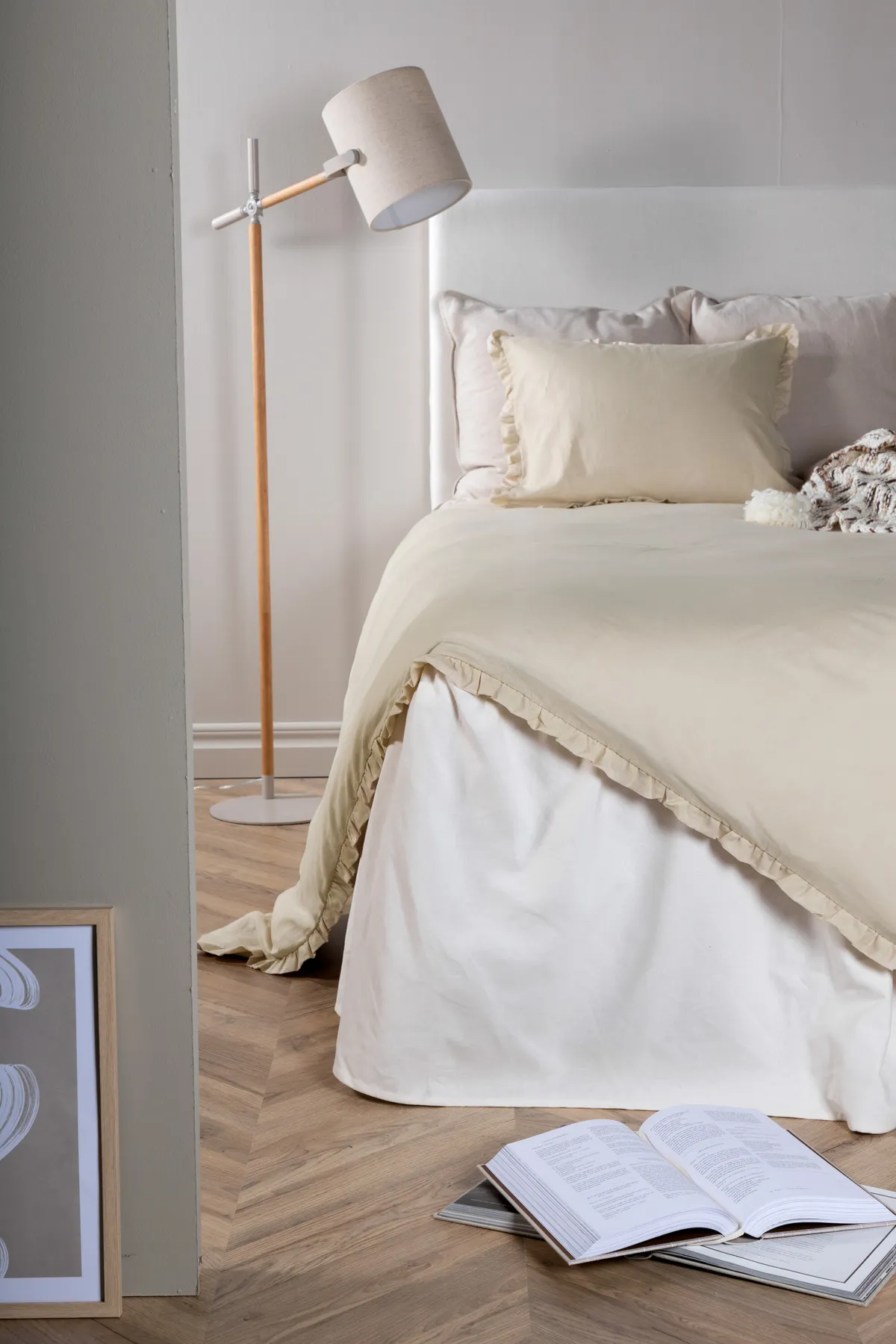 Komfortabler Bettbezug aus beigem Leinen und Baumwolle. Abmessungen: 150×200. Pflegehinweise: Maschinenwäsche 60 Grad.